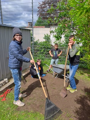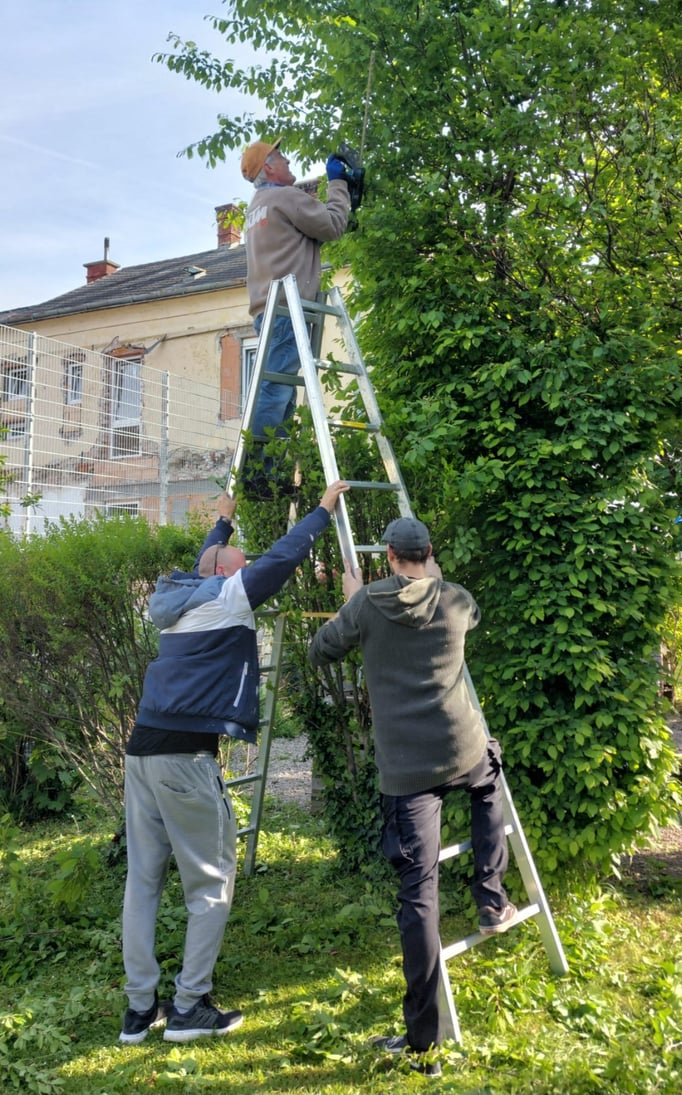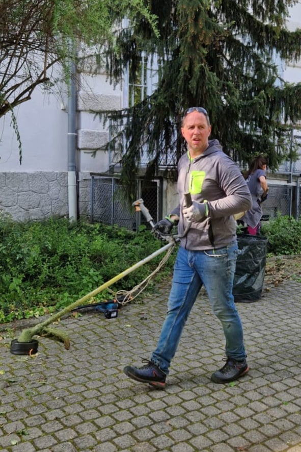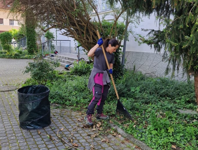 Gartenpflege von sehr engagierten MitarbeiterInnen der Firma "Berndorf Band" in der Freizeit am Samstag Vormittag, DANKE