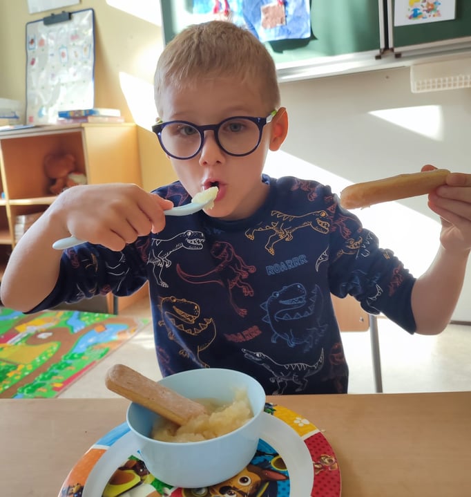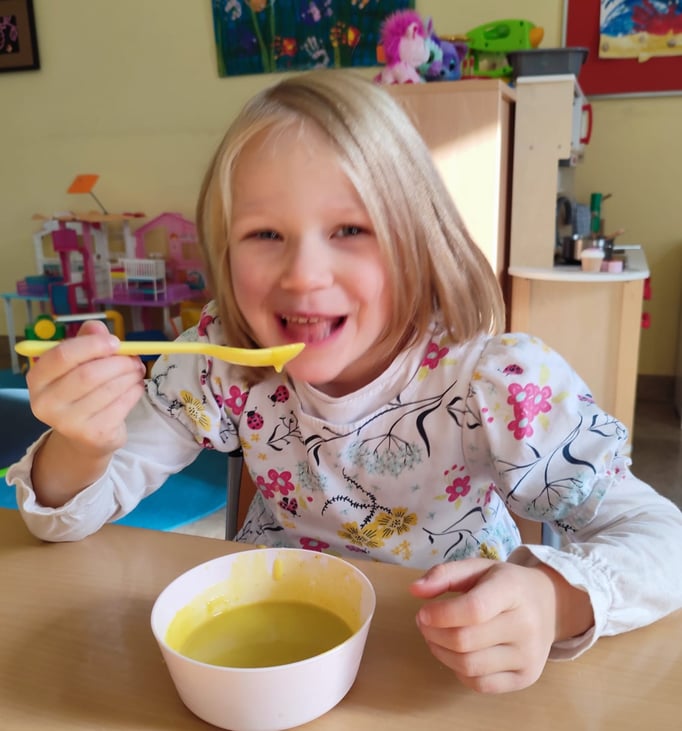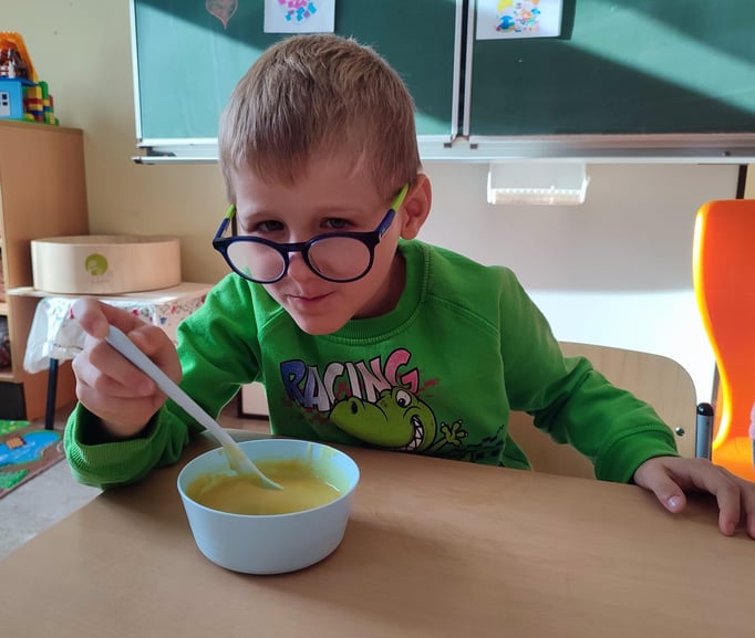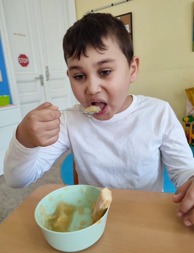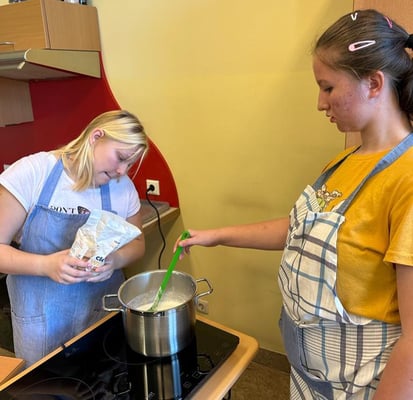Wir bereiten Suppe und Apfelmus zu