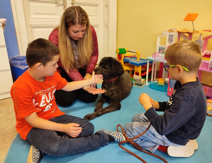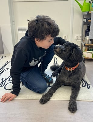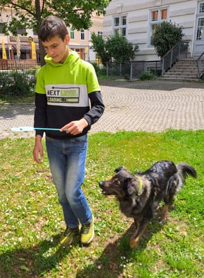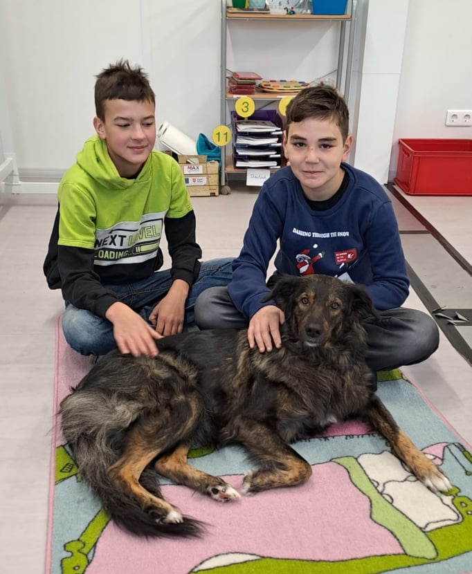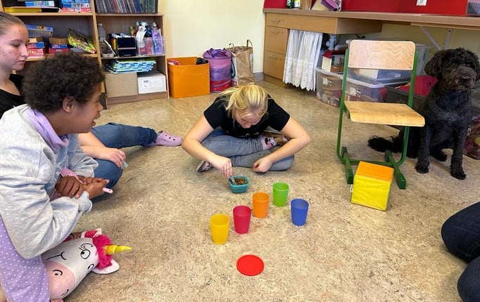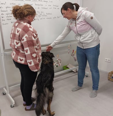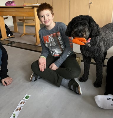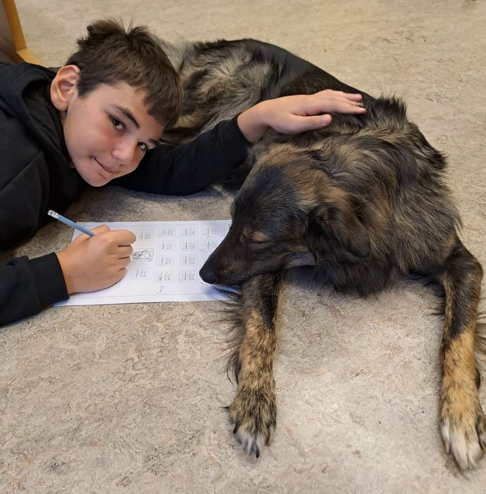 Mit unserern Therapiebegleithunden Coffee und Fräulein Lila macht das Lernen noch viel mehr Spaß