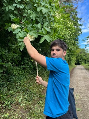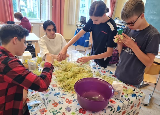 Bei der Holunderblütensirupherstellung