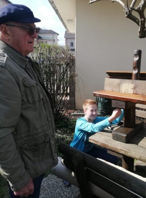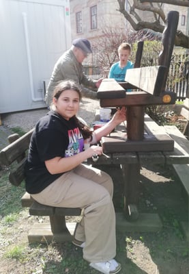 Unter Herrn Birbamers fachkundiger Anleitung wurden die Gartenbänke repariert