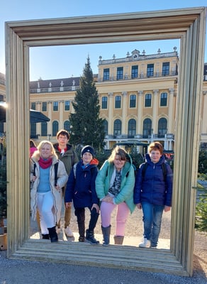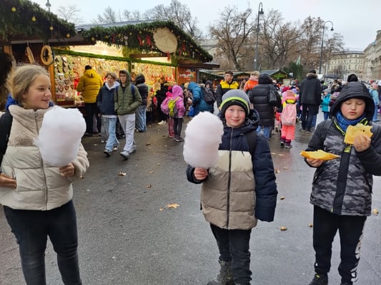 Bei strahlendem Sonnenschein besuchten die 4., 5. und 6.FÖ Klasse den Christkindlmarkt Schönbrunn